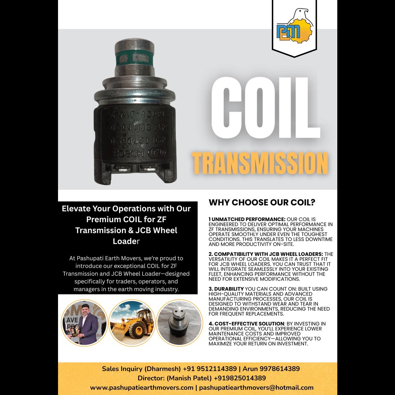 At Pashupati Earth Movers, we’re proud to introduce our exceptional COIL for ZF Transmission and JCB Wheel Loader—designed specifically for traders, operators, and managers in the earth moving industry.