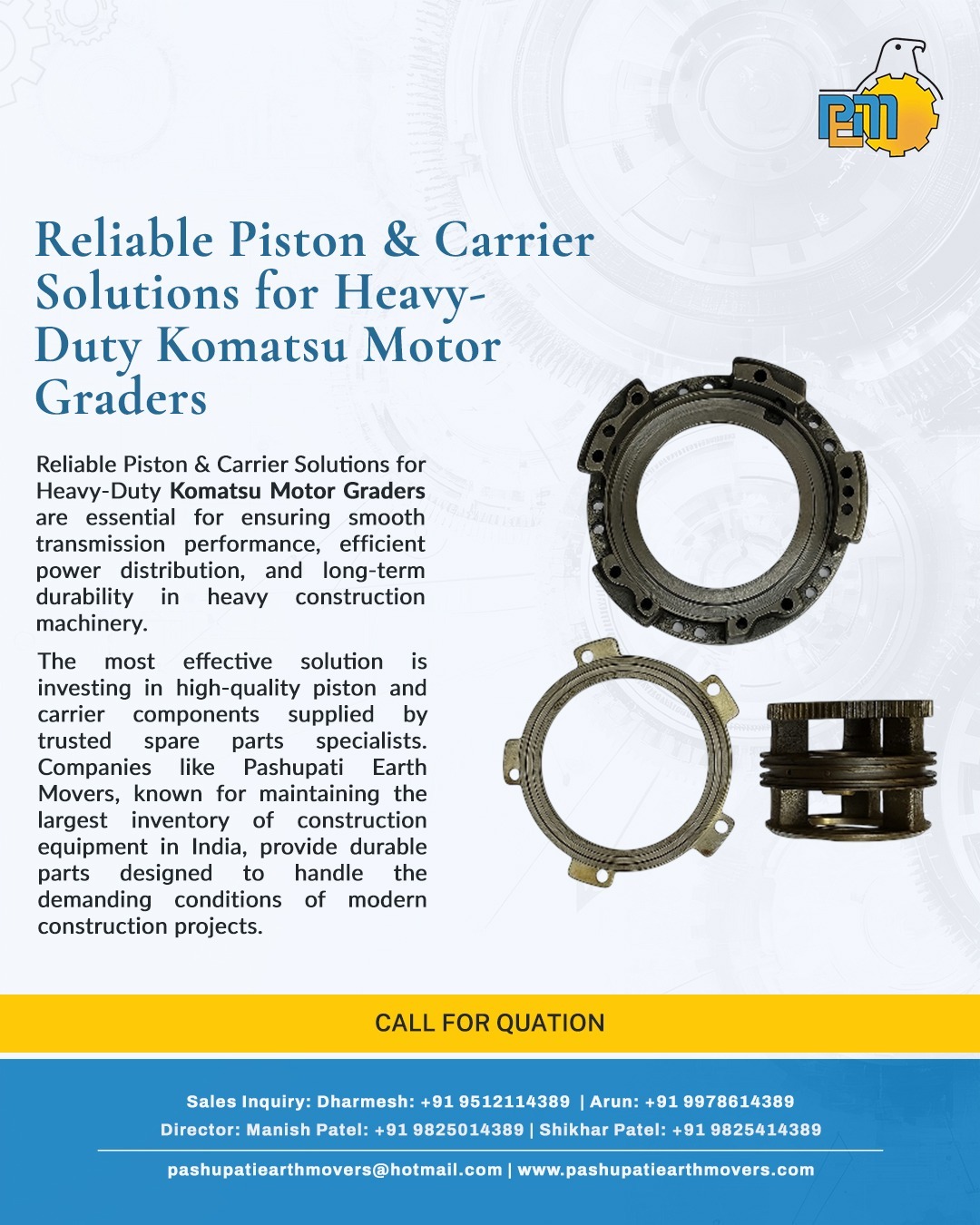 Reliable Piston & Carrier Solutions for Heavy-Duty Komatsu Motor Graders are essential for ensuring smooth transmission performance, efficient power distribution, and long-term durability in heavy construction machinery.